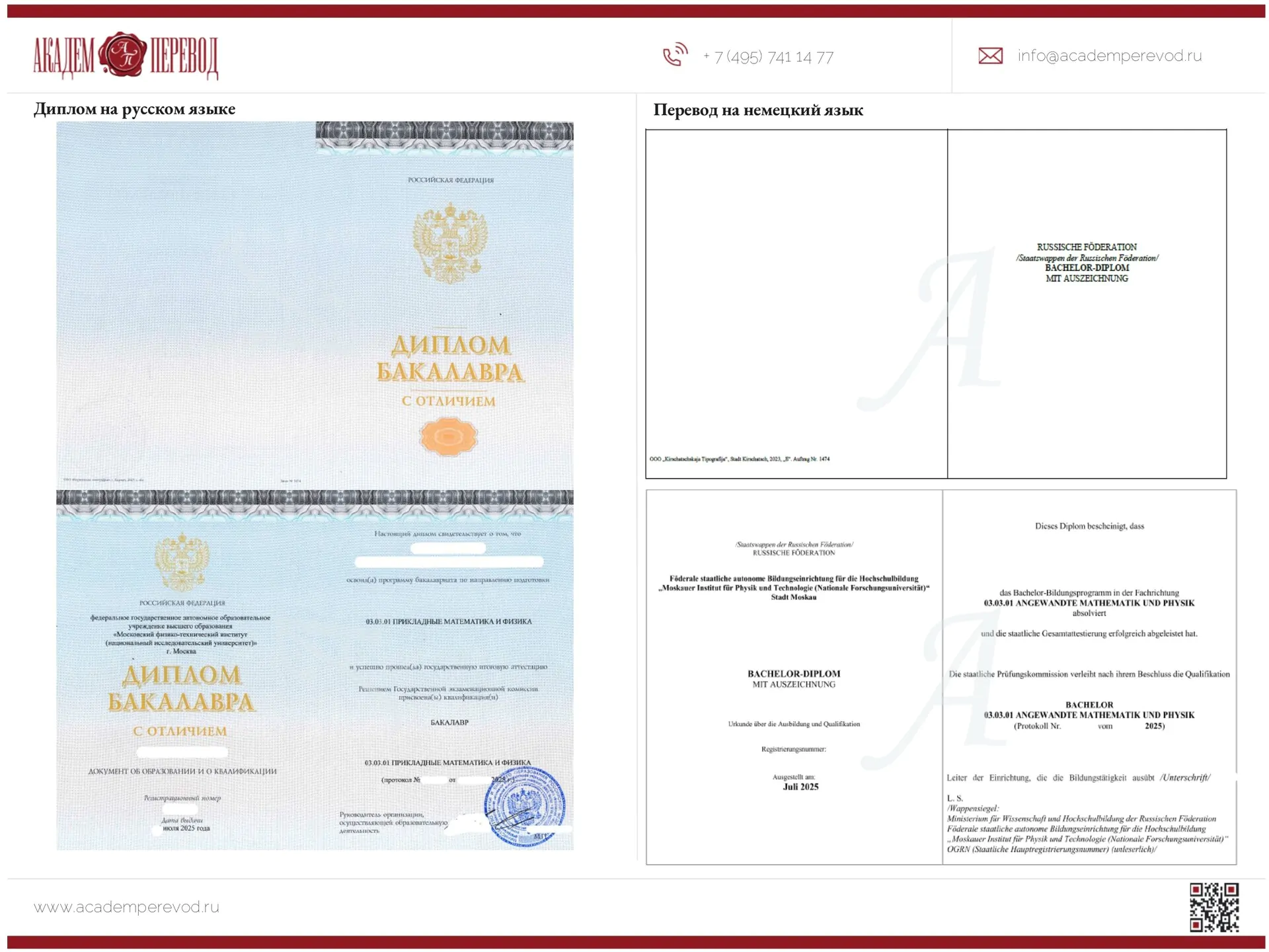 Заказать перевод вы можете любым удобным для вас способом: онлайн или очно. Если вы предпочитаете первый способ, то заказ можно оформить на нашем сайте. Для этого достаточно заполнить специальную онлайн-форму, прикрепив файл с документом для перевода (достаточно копии или фотографии в хорошем качестве), указав свои данные: имя, телефон, электронная почта. В поле «комментарии» укажите требования к переводу и язык, на который нужно сделать перевод. После того, как все поля будут заполнены, нажмите кнопку «отправить». Отправляя нам заявку на перевод, вы даете согласие на обработку персональных данных, но не сомневайтесь, что ваши данные будут надежно защищены. Перед началом сотрудничества вы можете ознакомиться с политикой обработки личных и коммерческих данных на нашем сайте. После этого наш менеджер свяжется с вами, чтобы рассчитать стоимость заказа и уточнить детали (срочность выполнения заказа, необходимость заверения и апостиля). Мы работаем по 100-процентной предоплате, поэтому оплату заказа нужно произвести сразу, чтобы наши мы смогли приступить к выполнению. В нашем бюро доступны два способа оплаты: QR-кодом или наличными. Цены на наши услуги указаны на сайте. Мы также принимаем заказы очно, и при желании вы можете посетить наш офис. Наш адрес: Москва, Ленинградский проспект 68, строение 24. Чтобы найти нас, можно использовать карты в приложении Яндекс. Мы работаем с понедельника по пятницу с 10:00 до 19:00. Забрать готовый перевод можно в офисе, а при заказе от 5000 рублей для наших клиентов мы предлагаем курьерскую доставку. Если у вас остались вопросы, свяжитесь с нами по телефону или напишите в Telegram/Whatsapp.